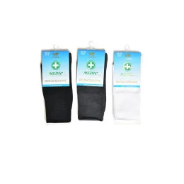 Ponožky z řady MEDIC, určené pro diabetiky a osoby s oběhovými problémy. Pružný lem nezpůsobuje tlak a umožňuje volný krevní oběh a přírodní suroviny použité při jejich výrobě zaručují pohodlí při používání.