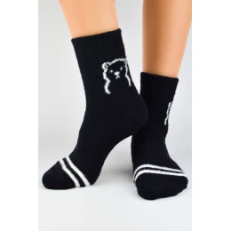 Dámské huňaté ponožky s medvídkem, netlačí, příjemné na dotek, ideální pro chladné dny.