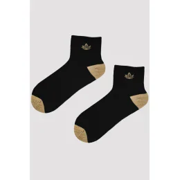 Dámské ponožky bez zad s ozdobnými lurexovými prvky. Složení materiálu: 79 % bavlna, 16 % polyamid, 4 % elastan.