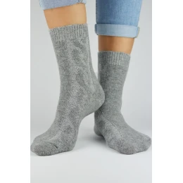 Dámské ponožky s netlačící vlnou. Složení materiálu: 42 % vlna, 20 % polyamid,19 % viskóza, 18 % polyester,1 % elastan.