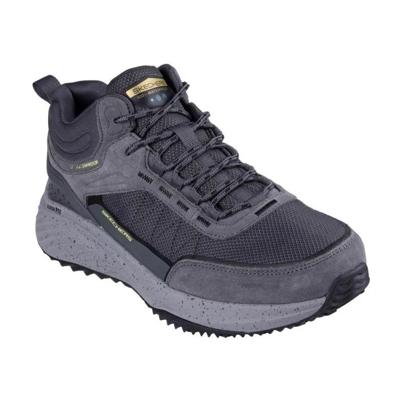 Skechers Bounder RSE - Brekor je univerzální pánská sportovní obuv / teniska, která kombinuje pohodlí a funkčnost s moderním městským stylem. Svršek je vyroben z kvalitní nubukové kůže a textilu a je voděodolný, aby chránil nohy před vlhkostí při chůzi po městě nebo na krátkých venkovních výletech, přičemž si zachovává atraktivní vzhled v barevném provedení Charcoal/Lime