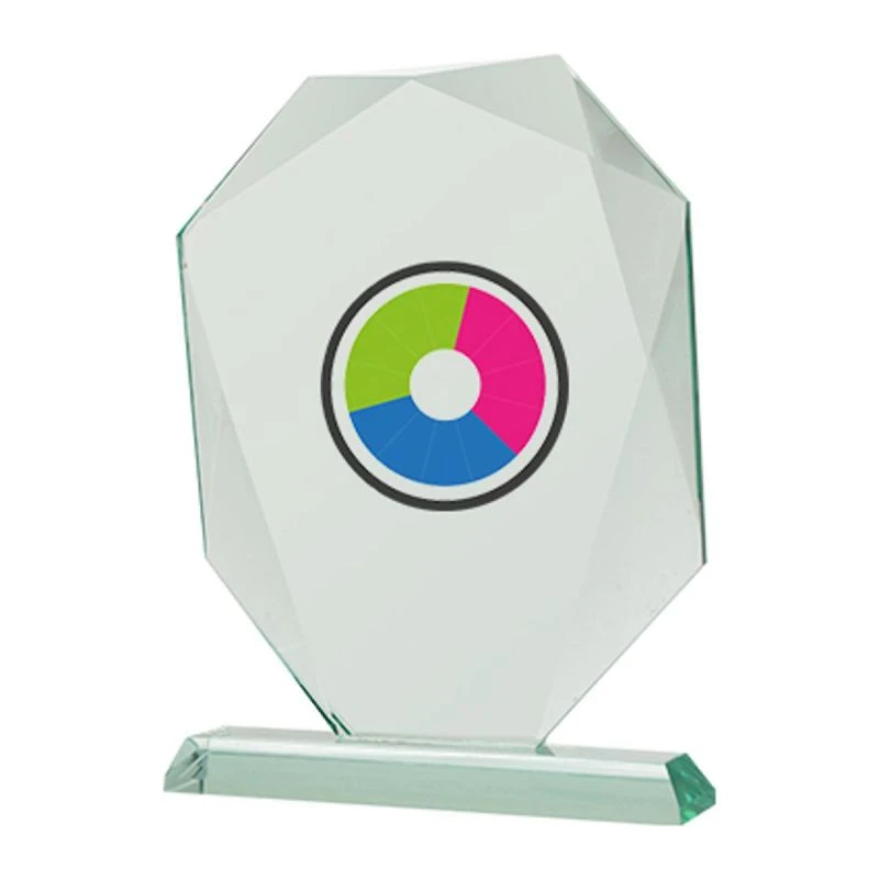 Skleněná trofej s barevným potiskem LuxorJet a pouzdro H-24 cm