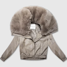Béžová kožená bunda s velkým kožešinovým límcem Glakate (LU98090#)