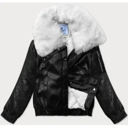 Černo-bílá kožená bunda s velkým kožešinovým límcem Glakate (LU98090#)