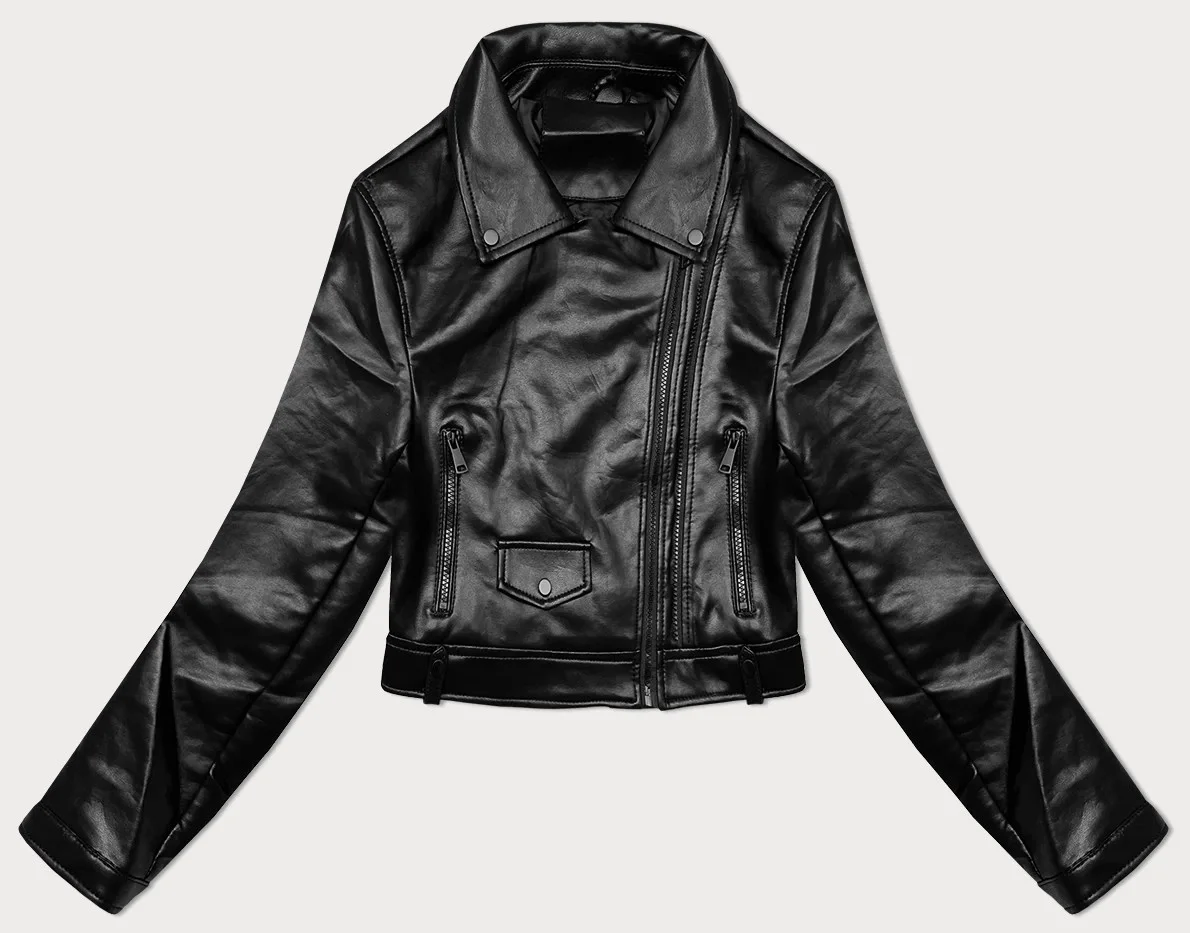 Černá kožená bunda s klopami J Style (11Z8128)