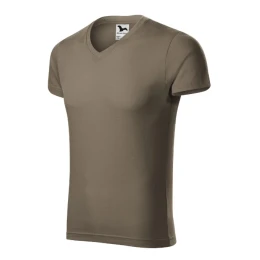 přiléhavý střih s bočními švy hlubší výstřih ve tvaru V úzký lem průkrčníku z žebrového úpletu 1:1 s 5 % elastanu vnitřní část průkrčníku začištěna páskou z vrchového materiálu zpevnění ramenních švů páskou silikonová úprava