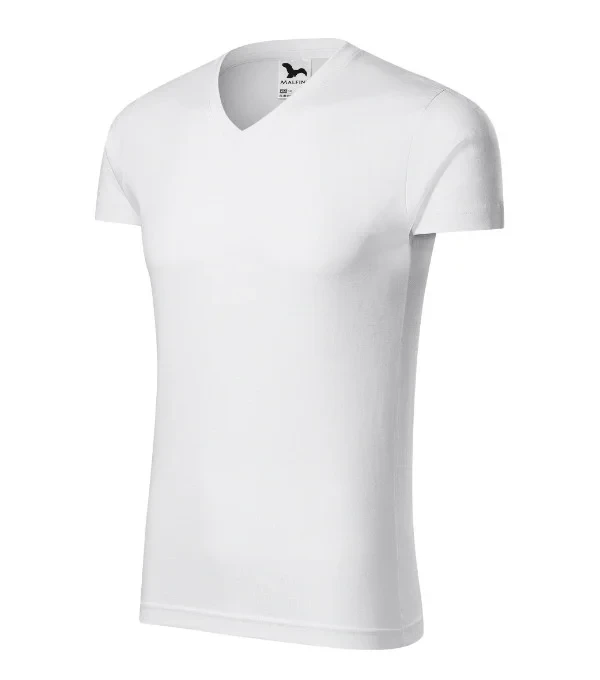 přiléhavý střih s bočními švy hlubší výstřih ve tvaru V úzký lem průkrčníku z žebrového úpletu 1:1 s 5 % elastanu vnitřní část průkrčníku začištěna páskou z vrchového materiálu zpevnění ramenních švů páskou silikonová úprava