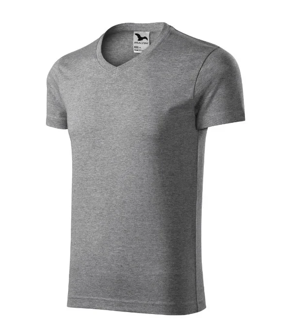 Slim Fit V-neck tričko pánské tmavě šedý melír