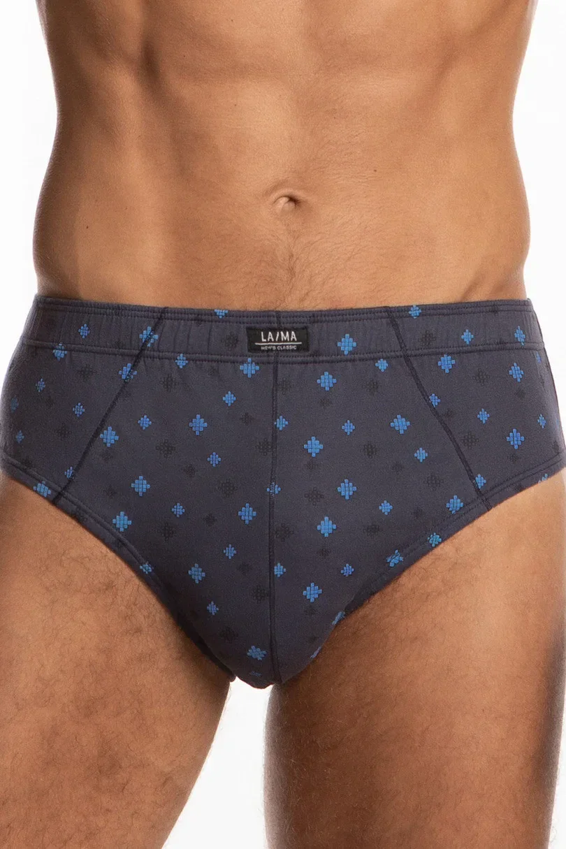 Klasické pánské slipy, zesílené boky, v pase pohodlná guma lemovaná bavlnou, balené v krabičce po třech kusech ve vyobrazených barvách s jemným potiskem.