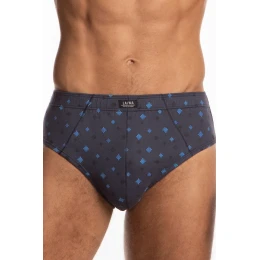 Klasické pánské slipy, postavené boky, v pase pohodlná guma lemovaná bavlnou, balené v krabičce po třech kusech v prezentovaných barvách s jemným potiskem.