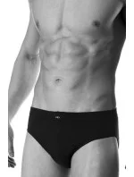 Klasické pánské slipy s vysokým pasem a širokými boky, plně zakrývající boky, vpředuódole profilované svislým střihem