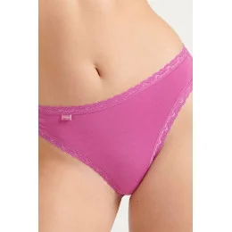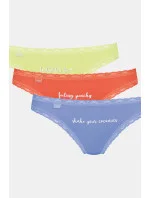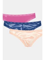 Dámské bavlněné bikiny zakončené jemnou krajkou.Balení po 3 kusech ve vyobrazených barvách.