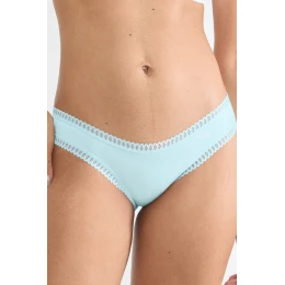 Spodní díl bikin je vyroben z vysoce kvalitní prodyšné bavlny s elastickými vlákny, která zaručují dokonalé přizpůsobení a plnou volnost pohybu. Jemné prolamované lemování v pase a na nohavičkách dodává spodnímu prádlu jemný, ženský charakter, aniž by způsobovalo jakýkoli tlak.