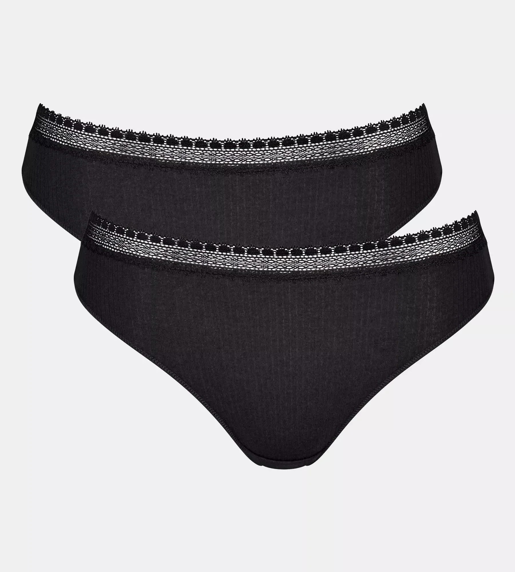 Dámské kalhotky GO Ribbed R Tai C2P - BLACK - černé 0004 - SLOGGI