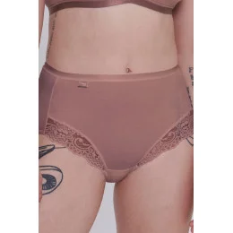 Elegantní maxi kalhotky s vysokým pasem a průstřihem pod nohama. Klasické krátké kalhoty s vysokým pasem a širšími boky. Kombinace výjimečně jemné bavlny Supima® a lesklého mikrovlákna. Elastické krajkové vsadky na nohavicích.