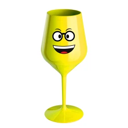 SMAJLÍK S BRÝLEMI - žlutá nerozbitná sklenice na víno 470 ml