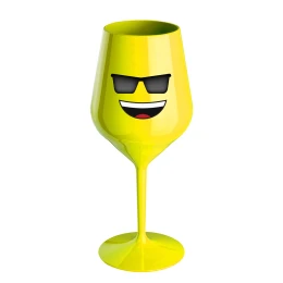 SMAJLÍK SE SLUNEČNÍMI BRÝLEMI - žlutá nerozbitná sklenice na víno 470 ml