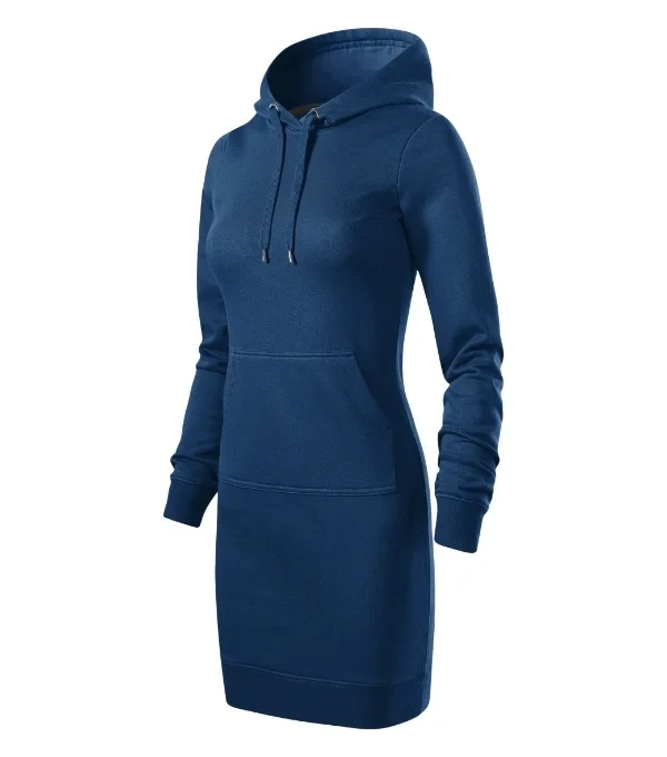 lehce vypasovaný střih s bočními švy délka nad kolena kapuce s podšívkou, na stažení šňůrkou vnitřní část průkrčníku začištěna páskou v barvě 94 dolní lem a manžety rukávů z žebrového úpletu 1:1 s 5 % elastanu nakládaná kapsa ve stylu klokanky vnitřní strana nepočesaná