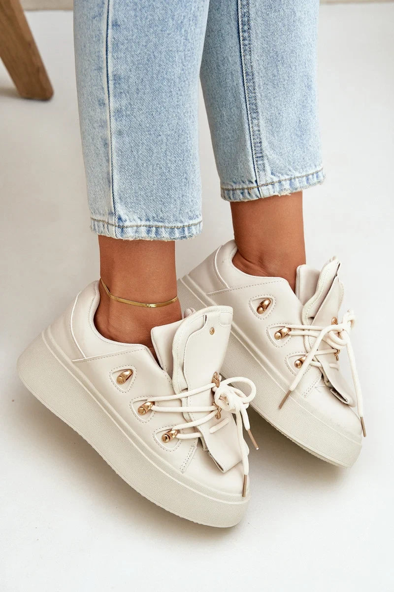 Sneakersy Damskie Na Platformie Beżowe Dolistana