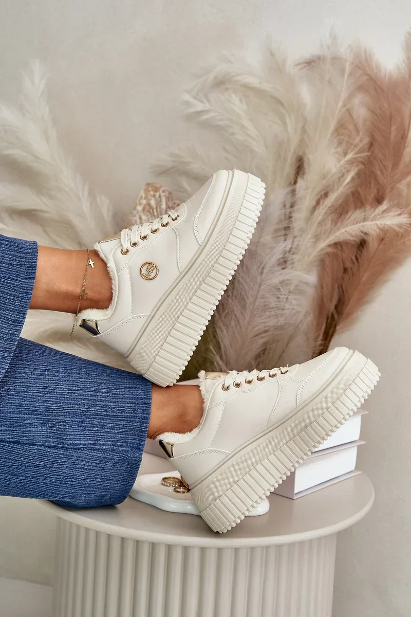Sneakersy Sportovní Boty Dámské Zateplené Na Masivní Podešvi Béžové Ardiela