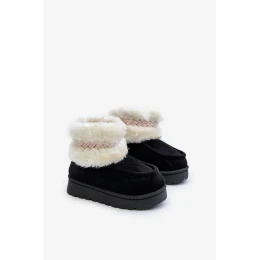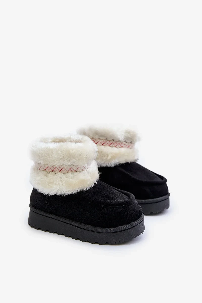 Sněhule Kotníkové Dětské S Kožešinou A Vzorem Černé Melefia