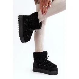 Dámské sněhule na pevné platformě z gumového materiálu. Uvnitř zateplené hustým kožíškem. Svršek s vázáním a syntetickou ovčí kůží. Ideální pro chladné zimní dny! Boty, které musíte mít!