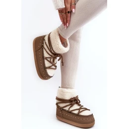 Jedinečné dámské sněhule jsou vyrobeny z materiálu odolného proti chladu a větru. Svršek s umělou ovčí kůží a cvočky bude ideální pro podzimně-zimní období. Klasický nazouvací model s přídavným šněrováním. Sněhule byly usazeny na masivní platformě. Uvnitř mají izolaci v podobě pěny a deky na boty, která poskytuje vysokou ochranu v chladných dnech.