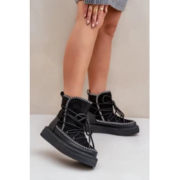 Dámské sněhule na platformě jsou kombinací pohodlí a stylu, ideální pro chladné dny. Model se vyznačuje půvabnou výšivkou na svršku, která mu dodává jedinečný charakter. Vnitřní část je zateplená přikrývkou na boty, která účinně chrání nohy před chladem. Praktické, teplé a módní, ideální volba pro zimní procházky.