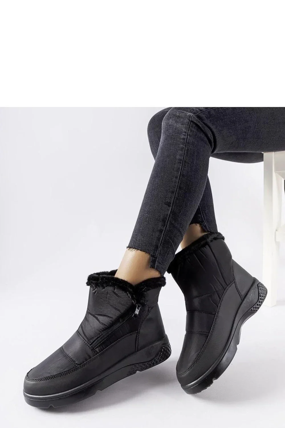 Černé zateplené sněhule na zip Judithe jsou ideální botou na zimu. Jejich kulatá špička jim dodává elegantní vzhled, zatímco konstrukce s vysokým kotníkem poskytuje ochranu před sněhem a vlhkostí. Pohodlný zip usnadňuje obouvání a zouvání bot a platforma v podrážce dodává stabilitu a odpružení při chůzi v nerovném terénu. Jsou vyrobeny z odolné gumy, jsou voděodolné a ideální pro každodenní použití. Tyto sněhule dokonale kombinují pohodlí, styl a ochranu před chladem a jsou ideální volbou na zimní procházky nebo nákupy. Navíc díky jejich černé barvě se budou hodit ke každému zimnímu oblečení.