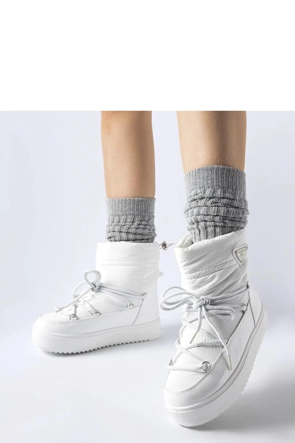 Bílé zateplené sněhule s elastickou gumou Oslavia jsou ideální zimní obuv. Jejich kulatý nos dodává jemnost, zatímco platforma zdůrazňuje moderní vzhled. Díky výšce nad kotníkem poskytují dodatečnou ochranu proti chladu a zajišťují pohodlí při nošení. Zateplený materiál je nezbytný v chladných dnech. Vyrobené z vysoce kvalitní gumy zaručují odolnost a odolnost vůči povětrnostním podmínkám. Navíc díky natahovací konstrukci je obouvání a svlékání těchto bot rychlé a snadné. Bílé zateplené sněhule s elastickou gumou Oslavia spojují funkčnost s módním stylem, díky čemuž budete připraveni na každou zimní dobrodružství.
