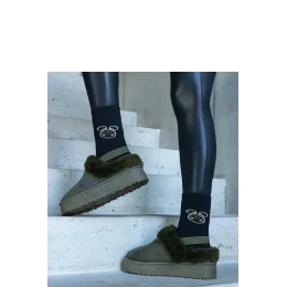 Zelené pantofle na platformě zdobené kožešinou a s pružným páskem na patě Frank jsou ideální volbou pro zimní dny. Díky jejich jedinečnému designu s kulatým nosem a ozdobnou gumičkou na patě jsou nejen stylové, ale také velmi pohodlné. Díky inovativnímu látkovému vnějšímu materiálu a zateplení vás udrží v teple a pohodlí. Jsou vyrobeny s kvalitní gumovou podrážkou, která zajišťuje stabilitu a jistý došlap. Tyto pantofle musí mít každá žena, která chce originální obuv na zimu!