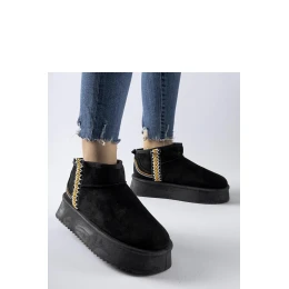 Černé sněhule na platformě Scavi jsou ideální obuví na zimu, vyrobenou z odolného syntetického materiálu. Mají střední podpatek, který jim dodává na eleganci a zároveň je činí pohodlnými při nošení. Zateplená konstrukce vás zahřeje i v těch nejchladnějších dnech, zatímco vysoký svršek vás ochrání před chladem a vlhkem. Díky nazouvací konstrukci se snadno nazouvají i vyzouvají. Kulatá špička dodává botám roztomilý nádech, zatímco stabilní platforma poskytuje pohodlí a jistotu při chůzi. Černé sněhule Scavi na platformě jsou nejen praktickou, ale i stylovou obuví, která se skvěle hodí na procházky po městě i na venkovní aktivity.