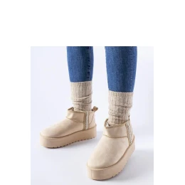 Béžové sněhule Dennison na platformě jsou ideální volbou pro ty, kteří ocení módní vzhled a pohodlí během zimních dnů. Boty jsou vyrobeny z kvalitní ekokůže a poskytují teplo a ochranu před chladem. Jejich kulatá špička jim dodává okouzlující vzhled, zatímco střední podpatek jim dodává elegantní nádech. Výška za kotníkem poskytuje při jejich nošení větší stabilitu. Díky příznivé ceně jsou navíc dostupné pro každého. Tyto nazouvací sněhule jsou ideální na procházku po městě nebo na víkendovou lyžovačku. S nimi můžete spojit styl s funkčností v každé situaci. Skvěle se hodí na podzimní a zimní sezónu. Technické parametry: - Vnější materiál: ekologická kůže - Zateplení: Ano - materiál podrážky: plast - Barva podrážky: béžová - Zapínání: Podrážka: 2,5 mm: Způsob zapínání: Slip-on - Kolekce: podzim/zima Béžové sněhule na platformě Dennison musí mít každý, kdo ocení módní vzhled a pohodlí v jednom.
