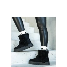 Černé ekokožené sněhule na platformě zdobené kožešinou Peters jsou skvělou volbou na zimu pro všechny módní ženy. Mají střední podpatek a moderní design s kulatým nosem, co je dělá velmi stylovými. Navíc jsou vysoké, levné a vyrobené z odolného materiálu, což z nich činí ideální doplněk každé zimní outfitu. Boty jsou také velmi pohodlné díky použití gumové podrážky a slip-on konstrukce. Ideální na nošení každý den v chladných dnech!