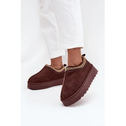 Sněhule pro ženy vyrobené z ekologického semiše jsou ideální volbou na zimu. Model zdobí lem ve formě vyšívaného ornamentu, který celému vzhledu dodává zvláštní charakter. Umístěné na platformě z pryže účinně izolují od chladu, a měkký kožíšek uvnitř zajišťuje pohodlí a teplo během mrazivých dní. Toto obuv spojuje funkčnost s moderním vzhledem, skvěle se hodí jak na každodenní procházky, tak na zimní outfity.
