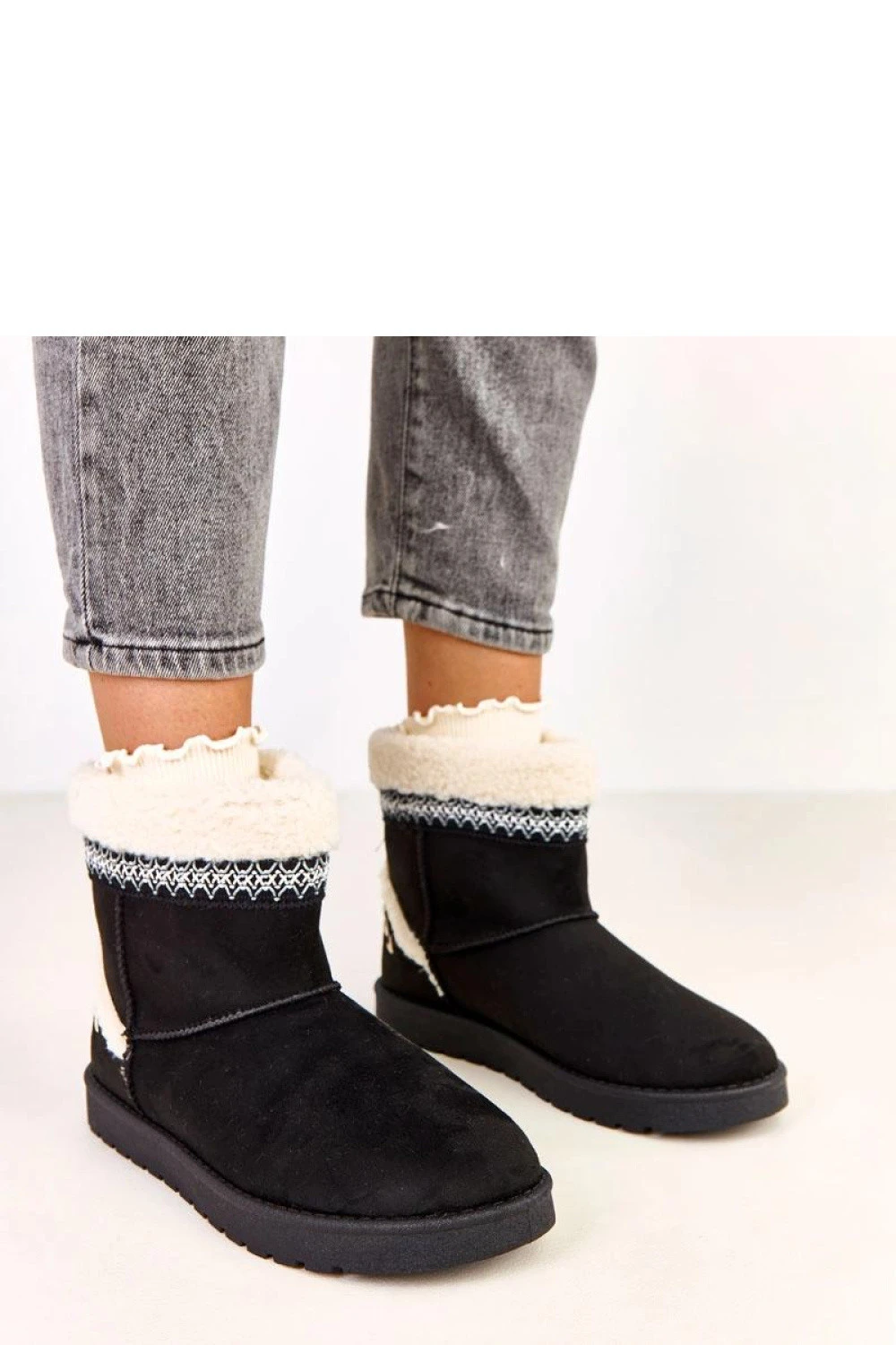 Sněhule s výšivkou jsou jedinečnou kombinací stylu a pohodlí na zimní dny. Vyrobené z ekologické semišové kůže vypadají elegantně a originálně, a výšivka jim dodává jedinečný charakter. Model má kulatou špičku a je vybaven kožešinou, co zajišťuje tepelný komfort i v chladných dnech. Díky slip-on konstrukci jsou boty snadno obouvají a pohodlné na každodenní nošení. Podrážka výšky 2,5 cm zaručuje stabilitu a pohodlí při chůzi, a textilní stélka pečuje o měkkost a pohodlí nohou.