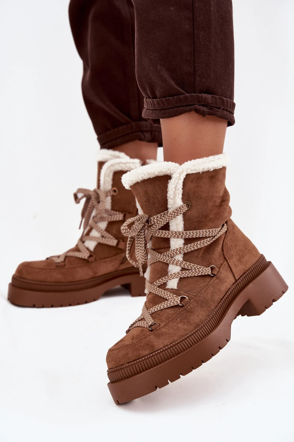 Dámské sněhule vyrobené z ekokožešiny jsou ideální volbou na zimní dny. Model se zapínáním na zip s dodatečným šněrováním zajistí skvělé přizpůsobení a pohodlí během nošení. Vnitřek bot byl vyložen teplým podšívkovým materiálem, který zaručuje teplo i v mrazivých dnech. Horní část lícové části je ozdobena měkkým, syntetickým kožešinovým lemem, který dodává celku útulný a stylový nádech. Jsou to praktické a zároveň módní sněhule, které se skvěle hodí jak na zimní procházky, tak i do každodenních outfitů.