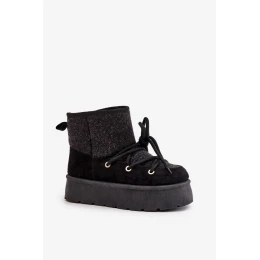 Stylové sněhule na platformě jsou ideální kombinací módy a pohodlí. Mají praktické šněrování vpředu, které zajišťuje dobré přizpůsobení noze. Vnitřek zateplený kožíškem zaručuje teplo v mrazivých dnech. Pohodlné a teplé, skvěle se hodí jak na každodenní nošení, tak i na zimní procházky. Při výběru velikosti se prosím řiďte tabulkou velikostí.