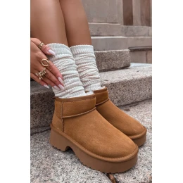 Sněhule z přírodního nubuku s teplou podšívkou Camel Milora