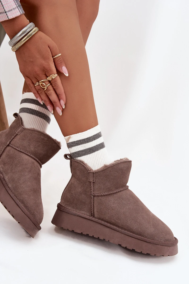 Stylové dámské sněhule Vinceza z přírodního semiše v hnědém provedení kombinují kvalitu, pohodlí a elegantní vzhled. Teplé zateplení s měkkým kožíškem udrží nohy v teple i během chladných zimních dní, zatímco lehká a flexibilní podrážka poskytuje stabilní a bezpečný krok. Semišový materiál dodává botám luxusní vzhled a příjemný pocit při nošení.