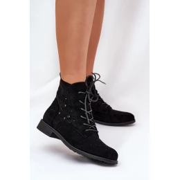 Šněrovací Boty S Ažurovým Vzorem S.Barski HY51-136 Černé
