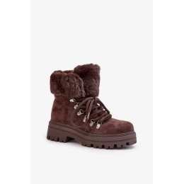 Šněrovací Dámské Trapery S Kožešinou Tmavě Hnědé Vaminia