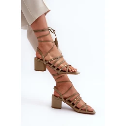 Šněrovací Sandály Na Nízkém Podpatku Ozdobené Kolíčky Zelené Chrisele