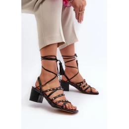 Šněrovací sandály na nízkém podpatku zdobené černými cvočky Chrisele