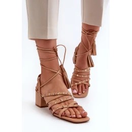 Šněrovací sandály na nízkém podpatku zdobené cvočky Camel Chrisele