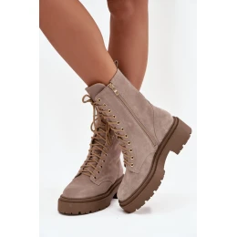 Botky pracovní dámské vyrobené z přírodního semiše jsou ideální volbou pro ženy, které ocení styl a pohodlí v každodenní obuvi. Měkká, příjemná na dotek kůže jim dodává elegantní charakter. Umístěné na masivní platformě s plochým podpatkem poskytují stabilitu a pohodlí při nošení, zaoblené špičky jim dodávají klasický, nadčasový vzhled. Vnitřek je vyztužen, což zajišťuje, že boty skvěle chrání před chladem v podzimní-zimní sezóně. Model kombinuje šněrování s uzavíráním na zip, díky čemuž je nejen módní, ale také funkční, snadno se obouvá a dobře se přizpůsobuje noze. Jsou to boty, které se skvěle hodí do každodenních stylizací, zdůrazňující moderní charakter každého outfitu.
