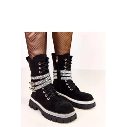 Elegantní a pohodlné dámské kozačky vyrobené z ekologického semišového kůže, které spojují moderní design s funkčností. Ozdobné pásky s cirkony a šněrování dodávají botám charakter a elegantní, lesklý akcent, ideální pro každodenní a městské outfity. Model s výškou pod kotníkem a 18,5 cm hřbetem zaručuje pohodlné přizpůsobení noze. Kulatá špička a platforma s podpatkem zajišťují stabilitu a pohodlí při chůzi, a zateplení zase zaručuje, že boty budou skvěle sloužit i v chladnějších dnech. Boční zip usnadňuje obouvání a vložka z umělé hmoty zajišťuje trvanlivost a pohodlí nošení. Ideální volba pro ženy, které oceňují moderní vzhled, pohodlí a efektní detaily, které zdůrazňují každý outfit.