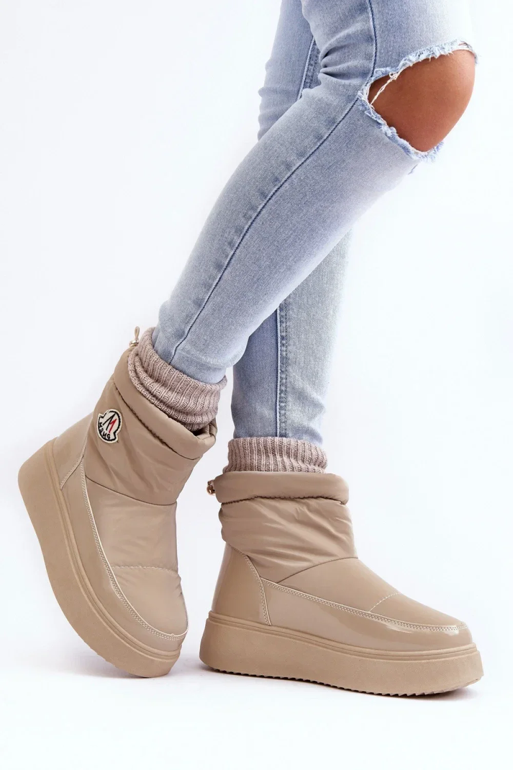 Klasické dámské sněhule vyrobené z kombinace textilu a ekologické kůže. Stojí na platformě. Vnitřek podšitý silnou kožešinou. Nazouvací model se svrškem v délce nad kotníky. Lemování v horní části svršku. Ideální pro ty, kteří ocení pohodlí a teplo v chladných dnech! Ty prostě musíte mít!