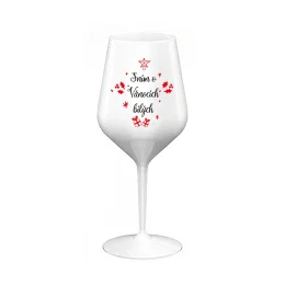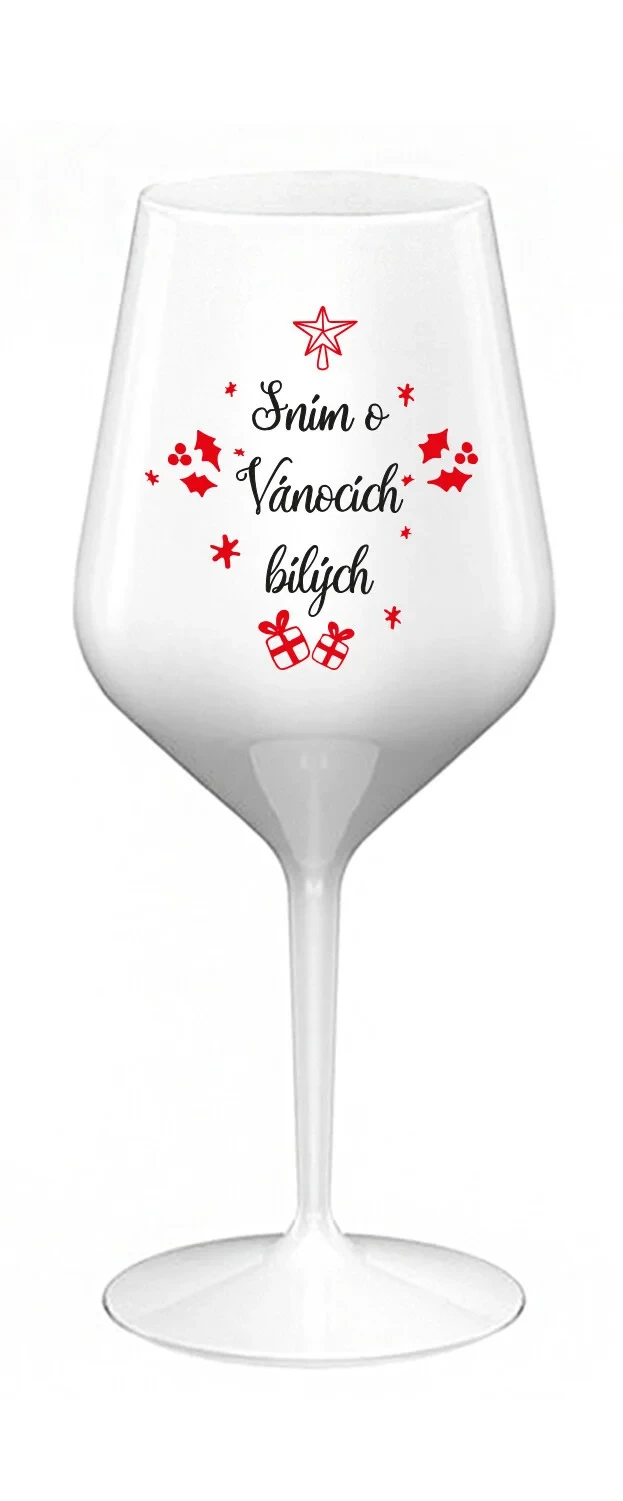 SNÍM O VÁNOCÍCH BÍLÝCH - bílá nerozbitná sklenice na víno 470 ml