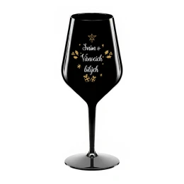 SNÍM O VÁNOCÍCH BÍLÝCH - černá nerozbitná sklenice na víno 470 ml